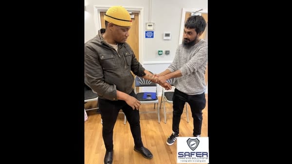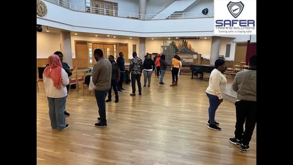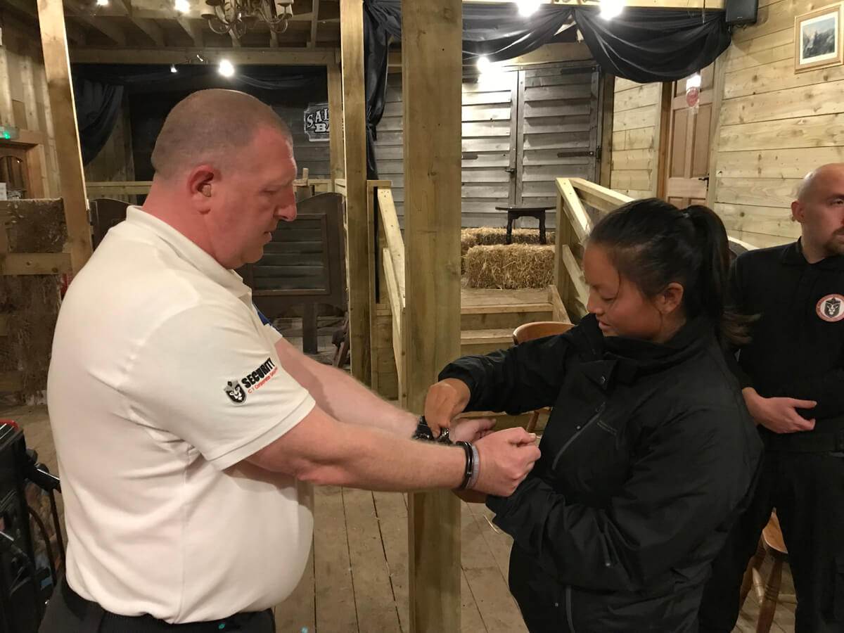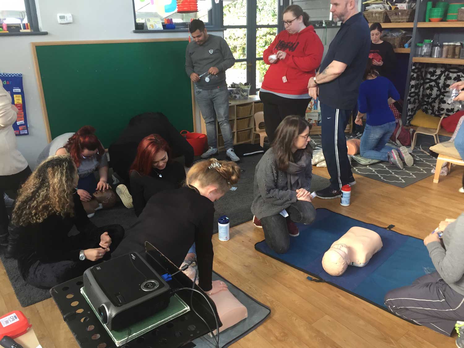 EFAW courses practiceHere we have a learner on one of EFAW courses practising applying a bandage to another learner this is after learning what type of wounds we can suffer and the importance of recognising the symptoms of shock and the things we can do for someone should they suffer the effects -